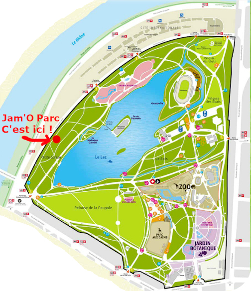 Depuis la porte principale (Porte des Enfants du Rhône), prendre l'allée qui longe le lac sur la gauche
