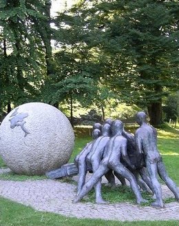 Après 300m, sur la gauche, se trouve la statue des hommes qui soulèvent le monde.
